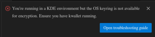 As far as I understand, this is telling me that I need a keyring that doesn’t exist on my device. I am not sure if getting this keyring will solve the problem since it seems (sort of) separate. I do not know what kwallet is.