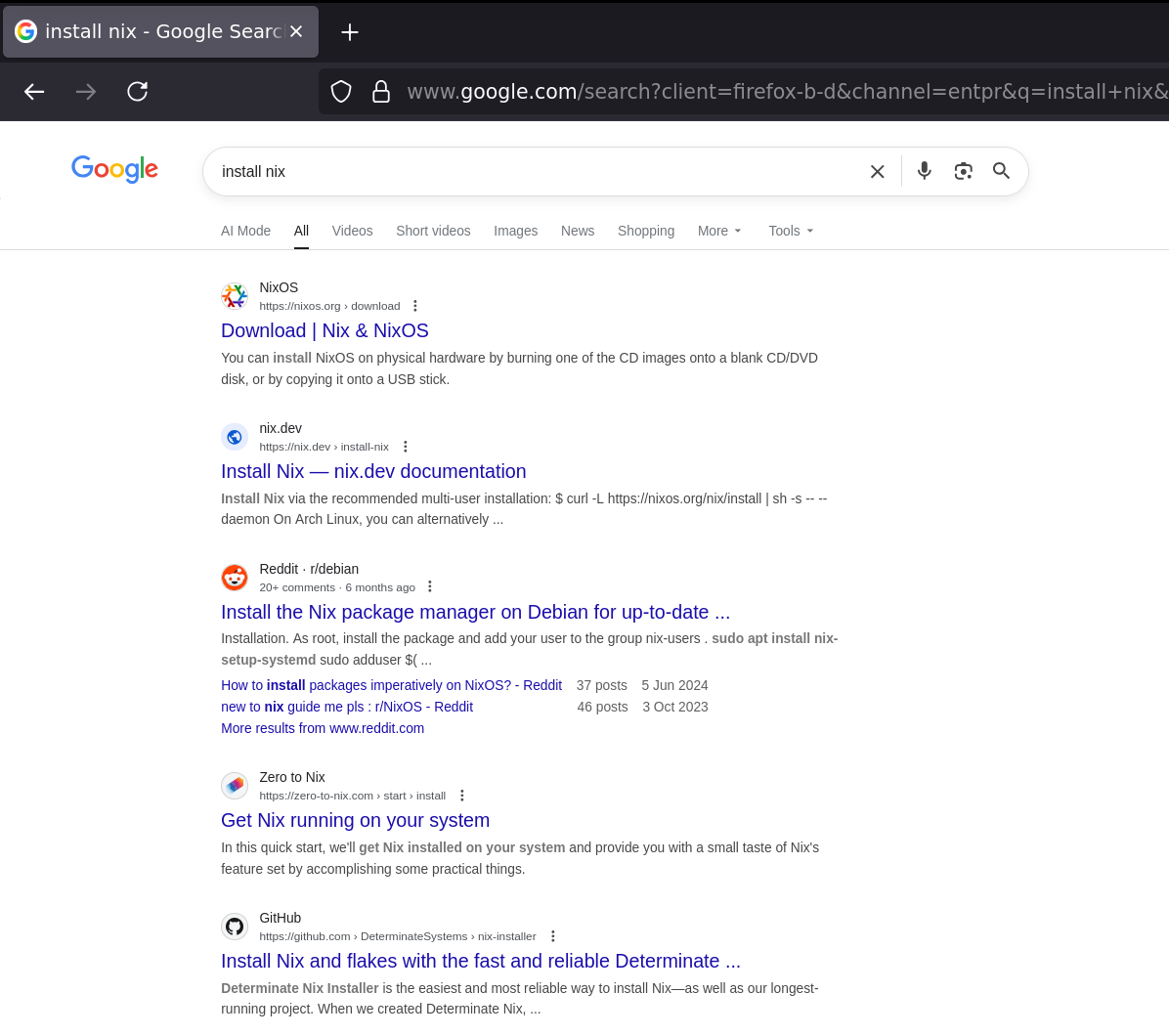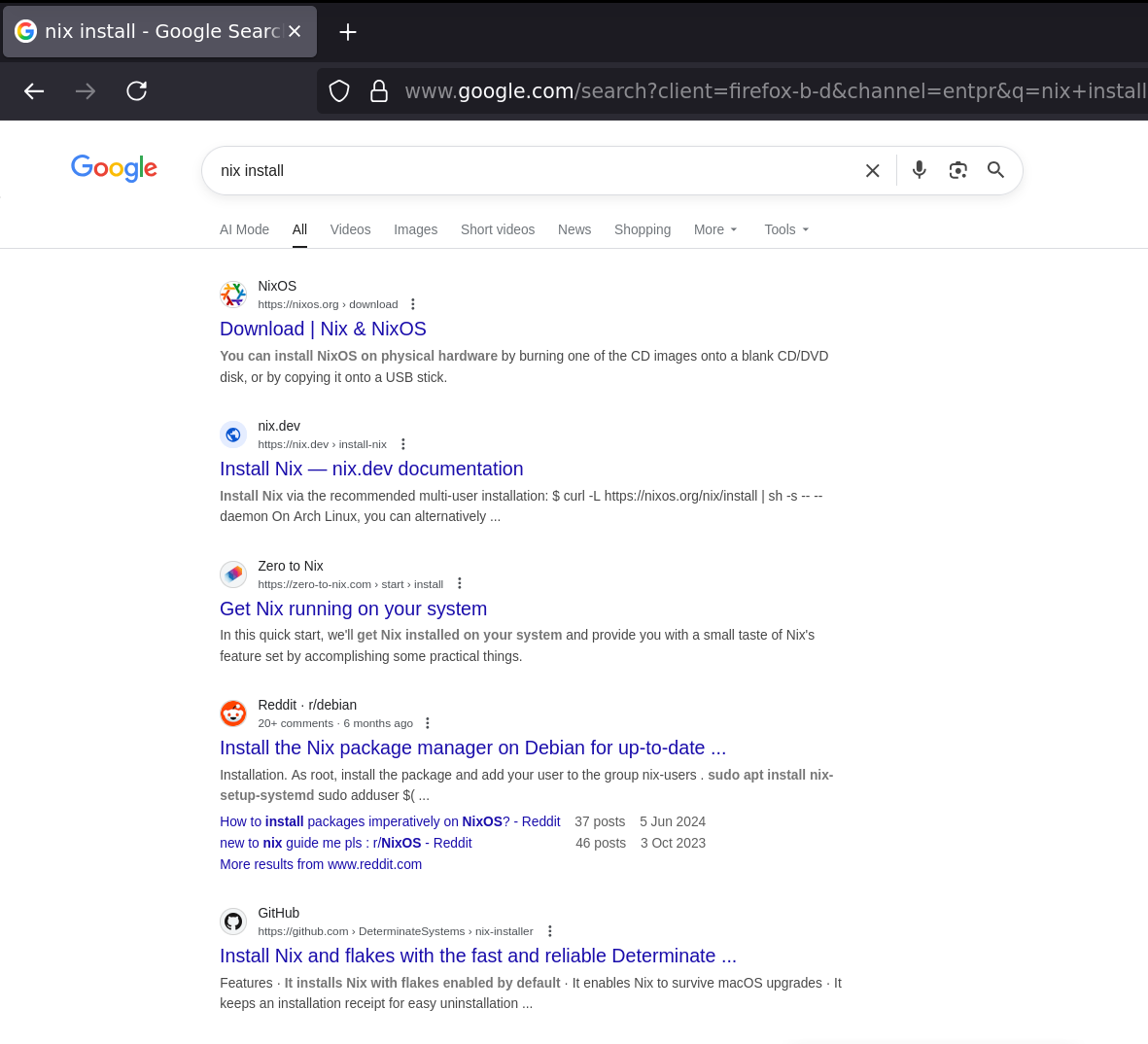 That’s just what google does, I get different results for different search terms “install nix”, “nix install”