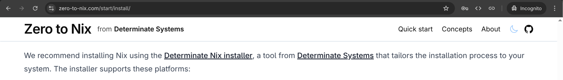 The Zero to Nix tutorials involve upstream Nix only and make no mention of Determinate Nix or any of its specific features. That will probably change soon but we are hoodwinking precisely no one here.