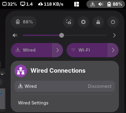Often times after boot, it is common to see the network icon with a “?”. However, the network is working normally because I can surf the internet or do other things that require a network connection.