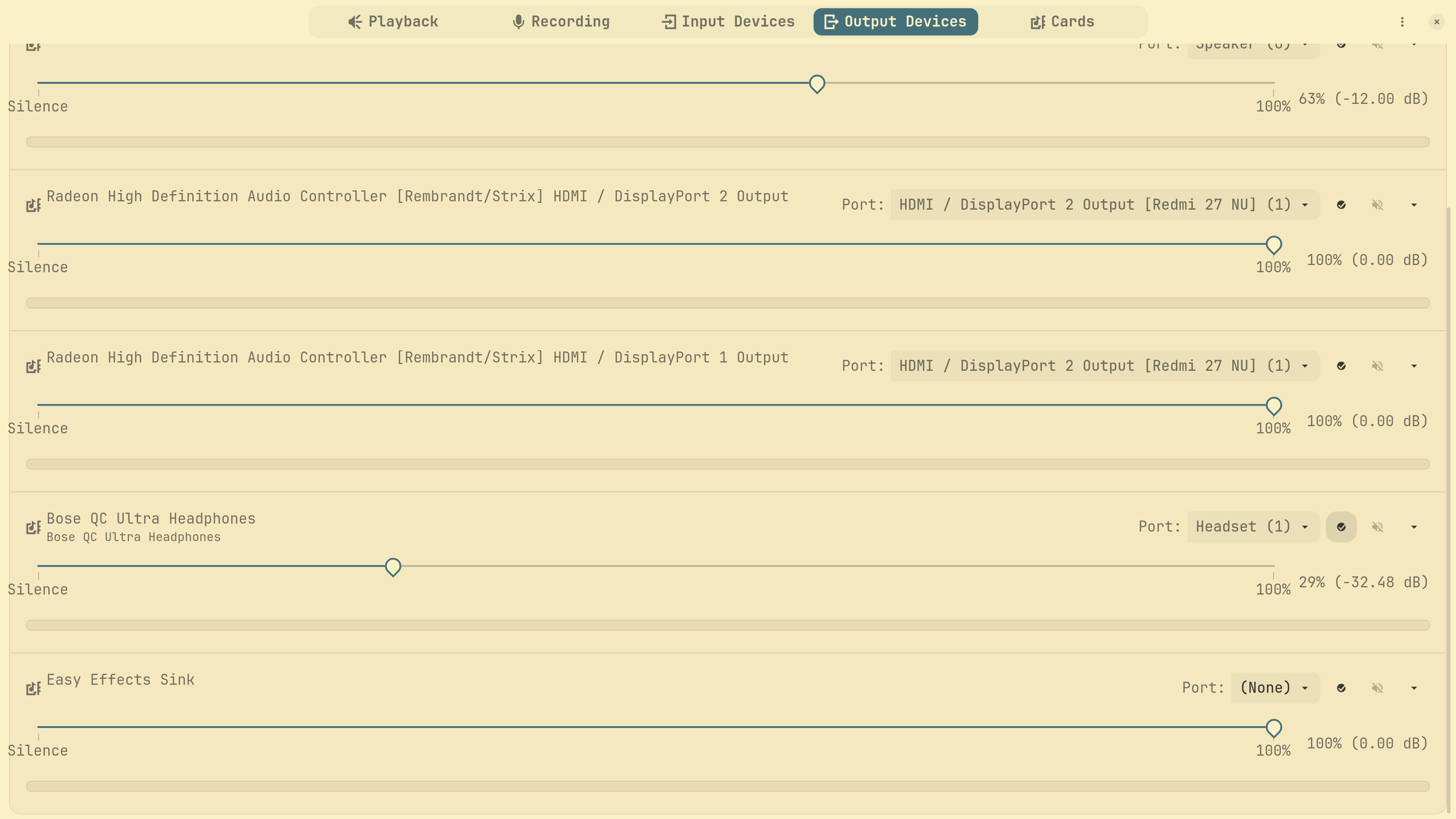 You get the point. I want to limit volume up to 80 dB because it is the safe limit for ears and is available on modern devices on iPhone, as you listed. I suppose that it’s easy to do on an iPhone because they all use the same hardware, and they are calibrated from the box. Then, it means finding out my speakers’ maximum volume and tinkering with PipeWire to do it or just getting a hardware mixer, right?