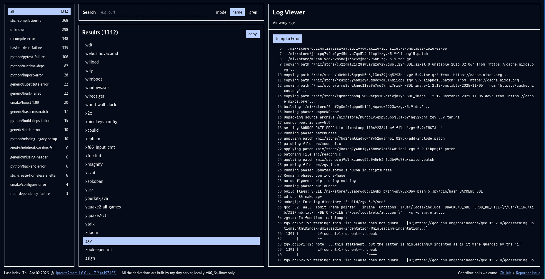 You may know that I’ve written a small tool to collect hydra failures into CSVs, nixpkgs-failure-notify. While this has been useful, I wanted to grab the actual build logs behind each failure, but I did not feel too good about scrapping hydra to download them periodically.