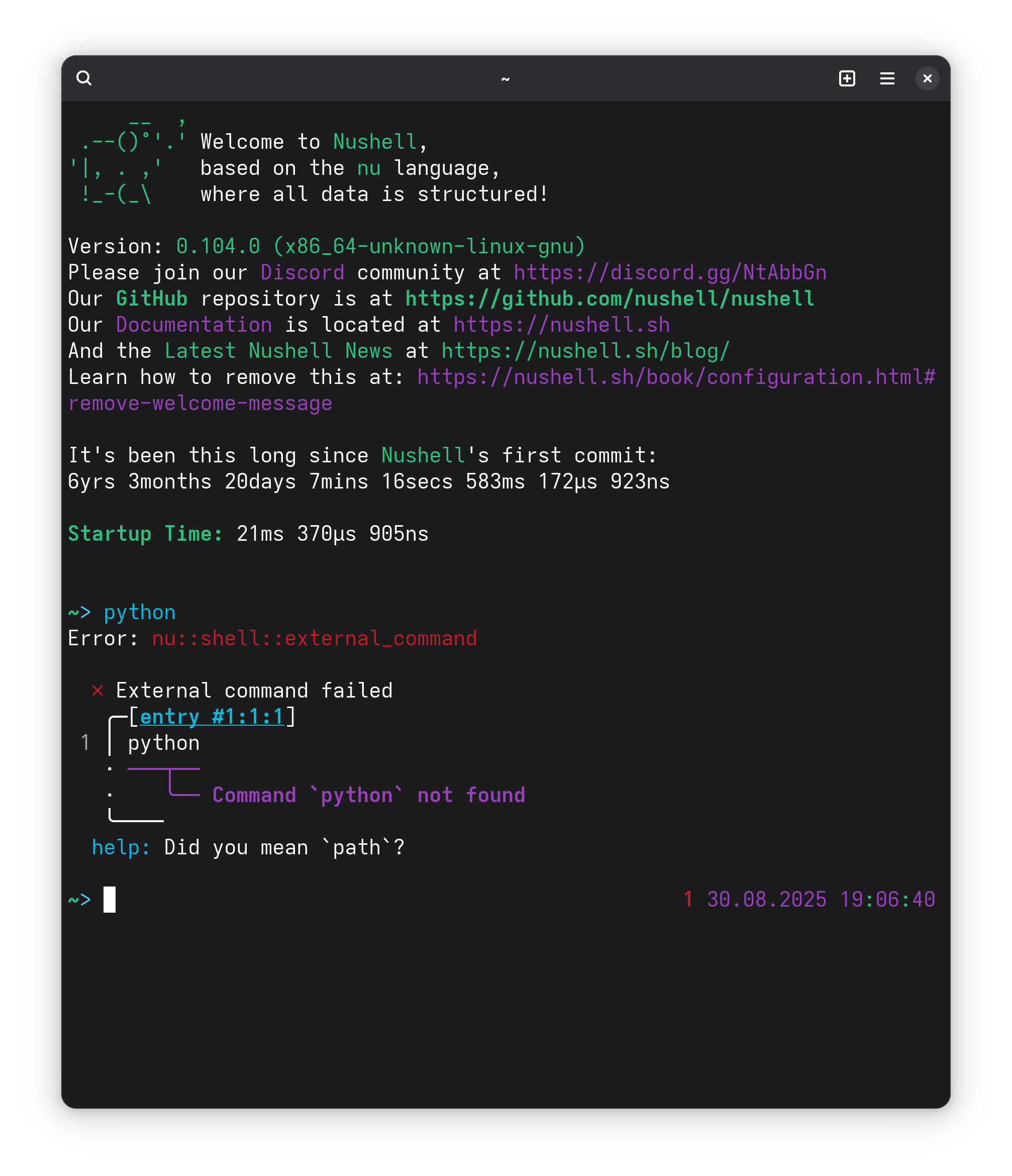 Nushell - NixOS Wiki is pretty good. I would like to set nushell as default shell but hesitate due to - see screenshot.