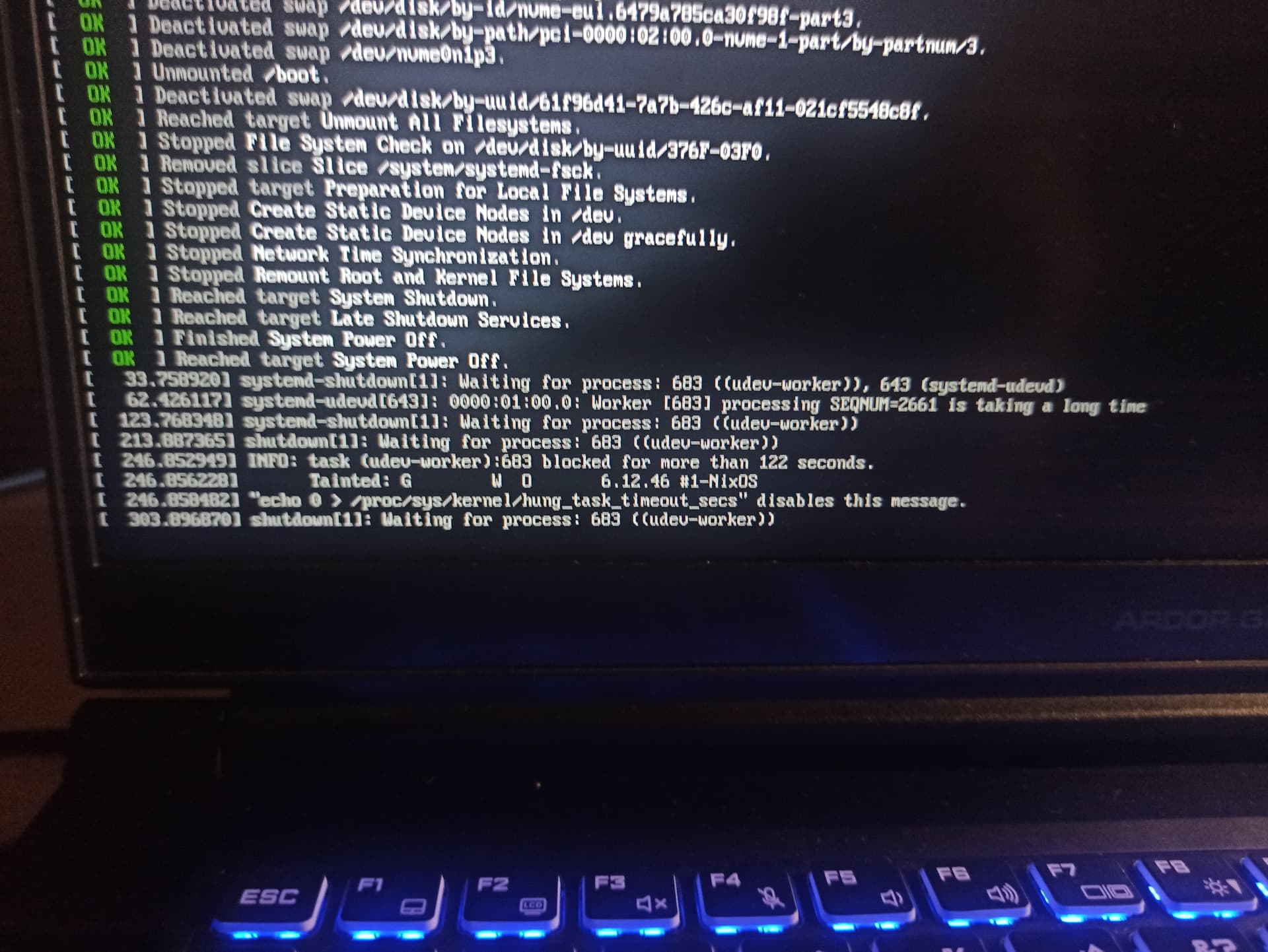 also some udev problems (udev services can’t be shutted down when rebooting/shutting the system down), don’t really know if it’s even connected to this accursed issue, but here:
