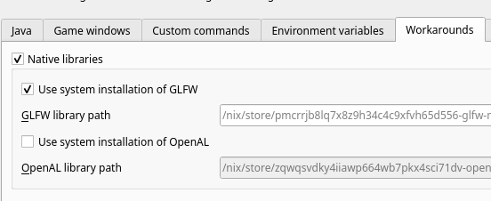 I tried switching to all the available java versions in prism’s settings, and nothing fixed it. The cited link on drivers was certainly of no help. I’m on nixpkgs-unstable.