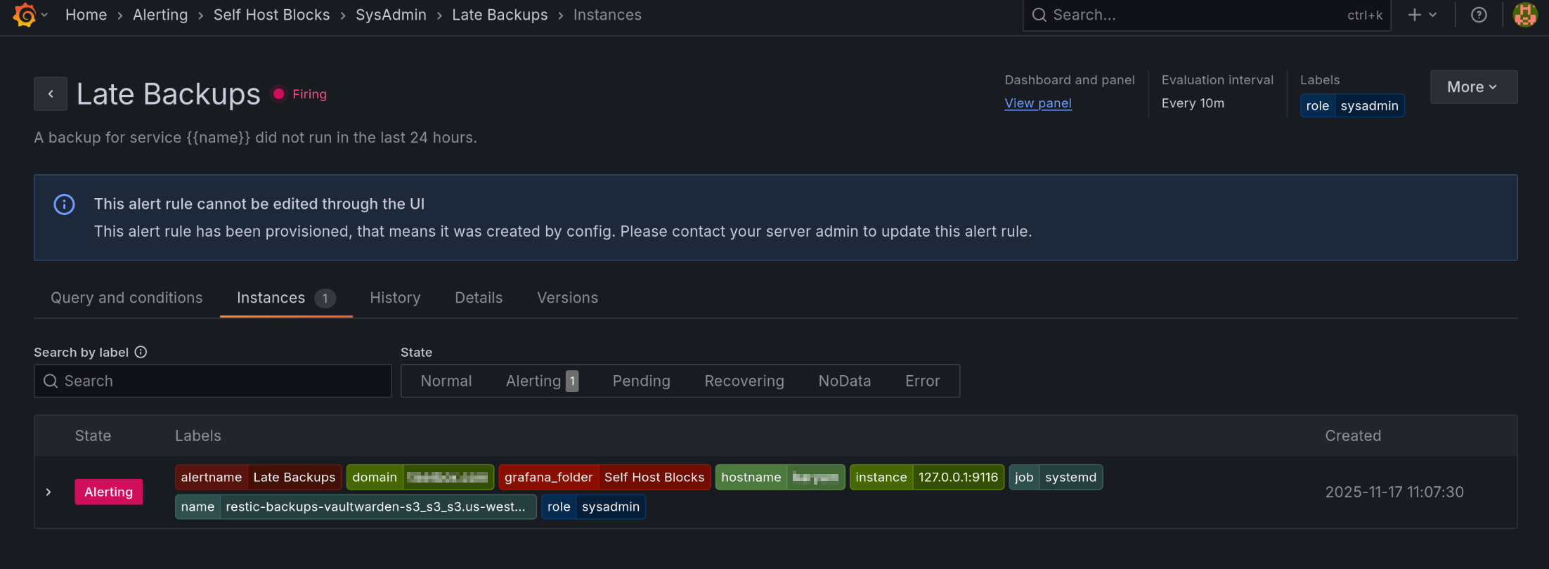 There has been a few updates since last post. The latest is a new dashboard showing backup jobs. There’s also an alert when no backup job ran in the last 24 hours or all job failed.