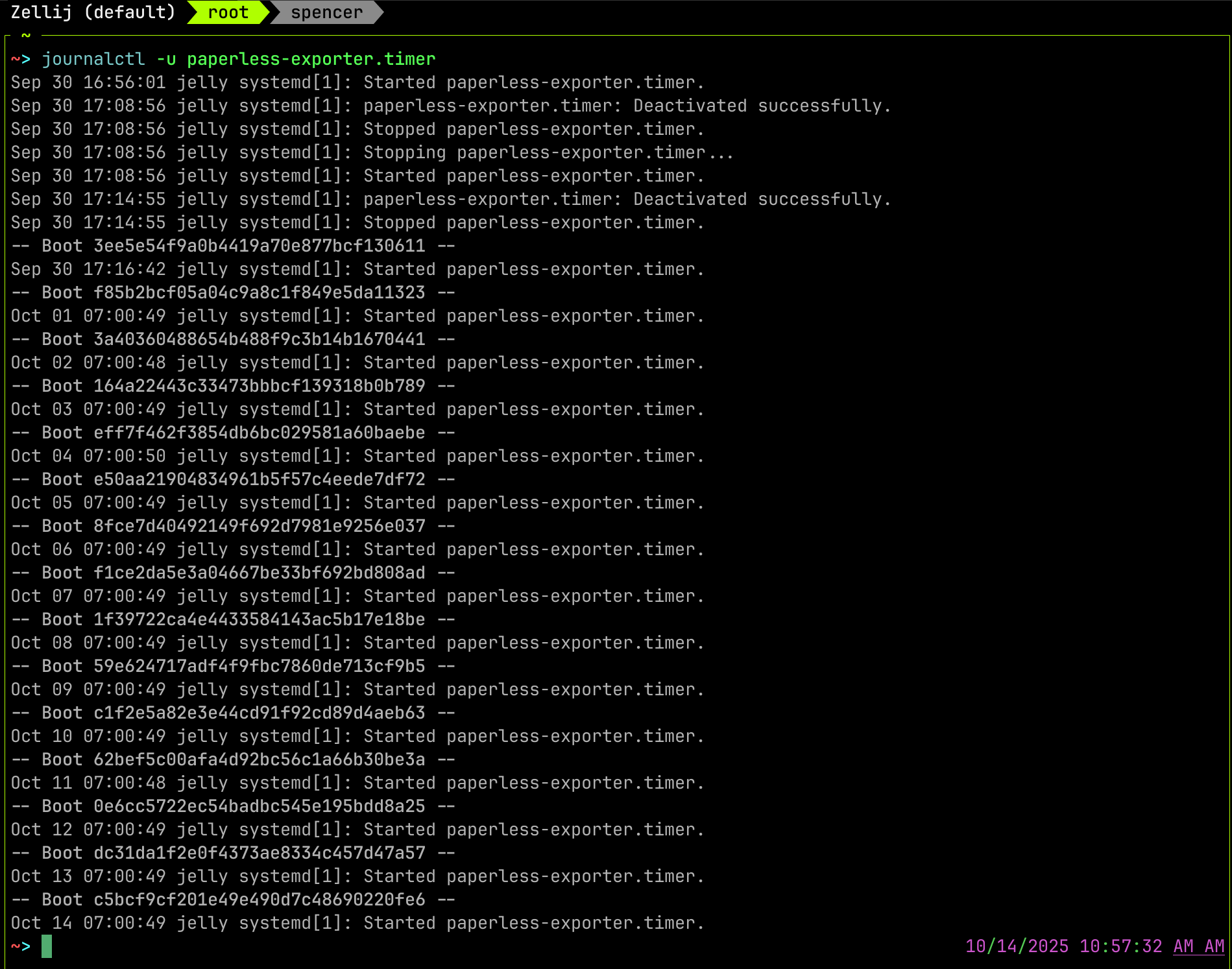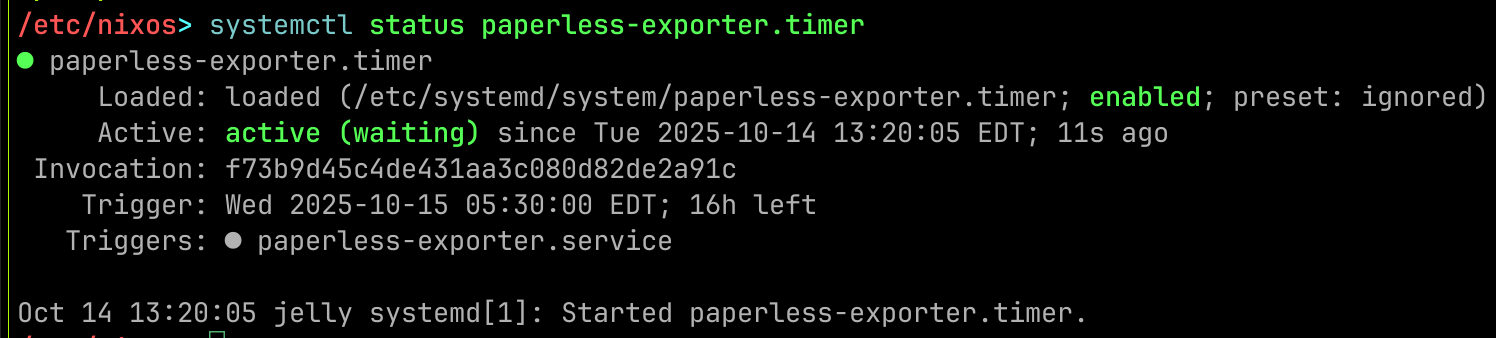 Tbh, I’m not a big expert on systemd timers and I don’t have paperless running. But for my restic backups the timer logged only the start once and still triggers every day. I wonder why yours starts every day at 7:00?