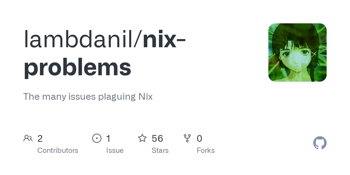 Besides that, yes, nix is flawed (but what isnât) and the documentation has sucked for (from what I can tell) 20 years, the tooling is way behind many other languages, the way nixpkgs is managed is far from optimal, flakes is in some kind of limbo state, and more things that the author pointed out, but Iâd use it over guix any day. I least I got it to run ![]()