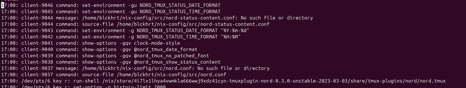 Yeah, I checked with ripgrep for “.conf” and “nord”, no results came up in my tmux config for those other than ones in nonrelated files. I do not have an src dir in my config. Another bit of setup context, I use a makefile to run home-manager switch.