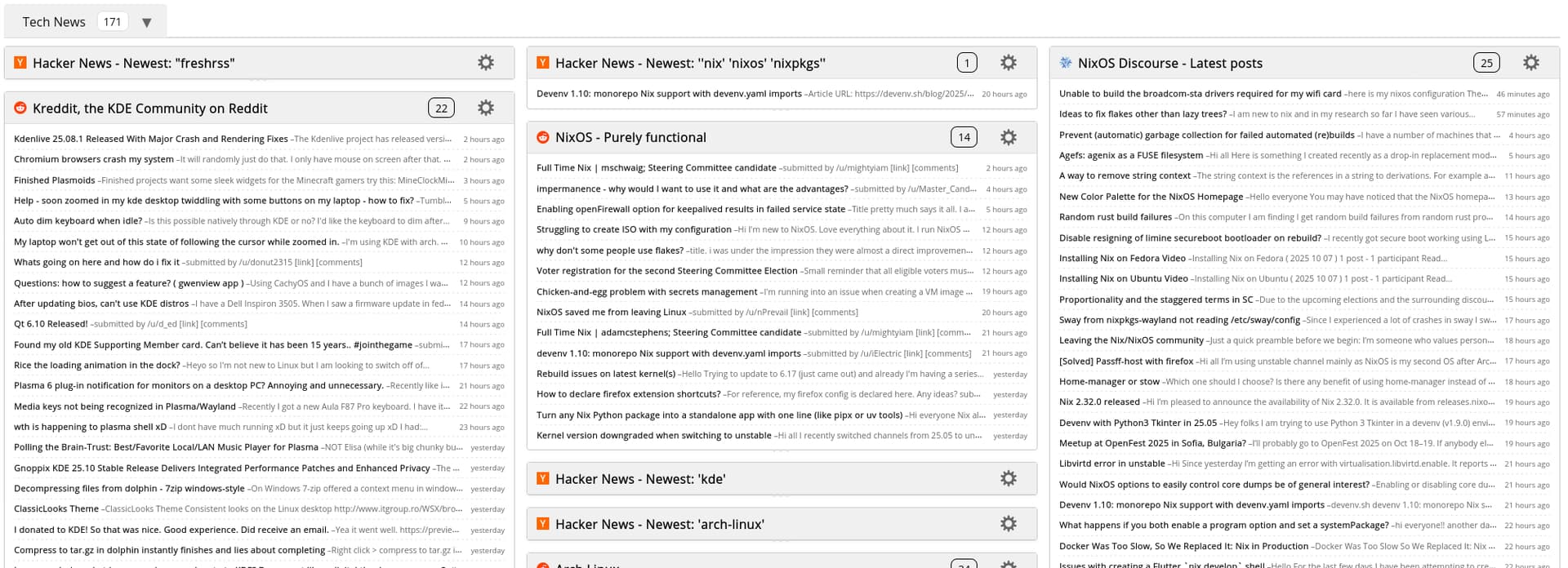 I’m a happy user of GitHub - tryallthethings/freshvibes: Netvibes / iGoogle like view for FreshRSS, a FreshRSS extension that presents a different widget like view of feeds, as compared to the linear interleaved view in most readers.