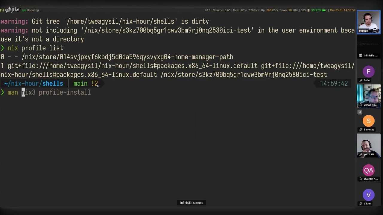 - @infinisil published 5 episodes of The Nix Hour! All episodes now also have a title tagging the mentioned topics, in addition to the more detailed timestamps