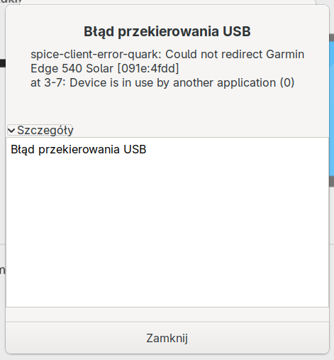 Trying to passtrough USB device to VM I get this error